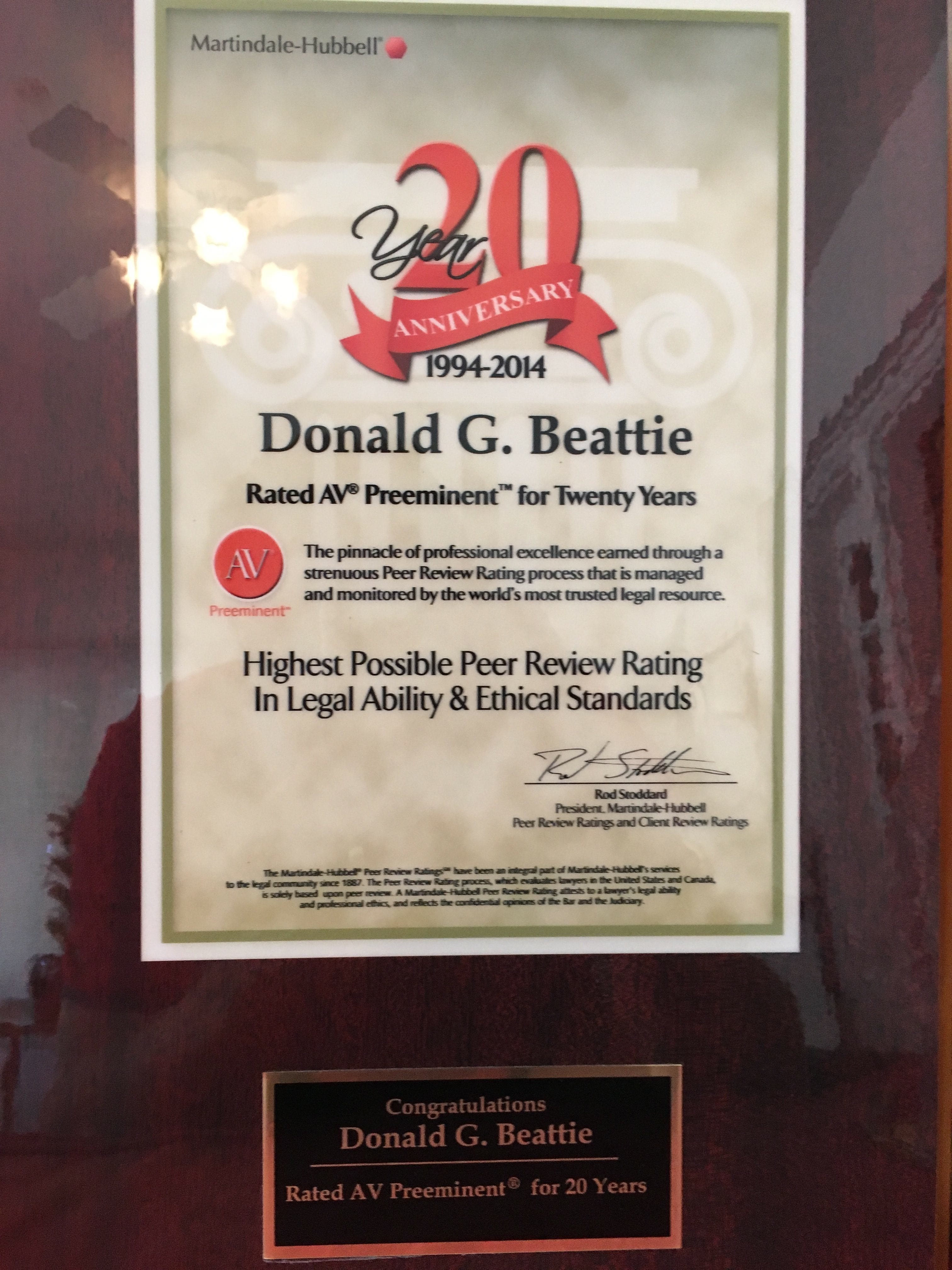 Don Beattie, has been rated AV Preeminent through Martindale-Hubbell® Peer Review Ratings™. For the 20th year, Don has received the Highest Possible Peer Review Rating in Legal Ability and Ethical Standards.